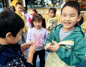 老师还带着孩子们用收集的棉花做手工:有的用棉絮粘出了可爱的小羊,有的把棉籽涂上颜色,拼成了漂亮的图案。“原来棉花这么厉害,能做这么多东西!”“我们要珍惜棉花做的物品,不能浪费!”孩子们你一言我一语,分享着自己的感悟。